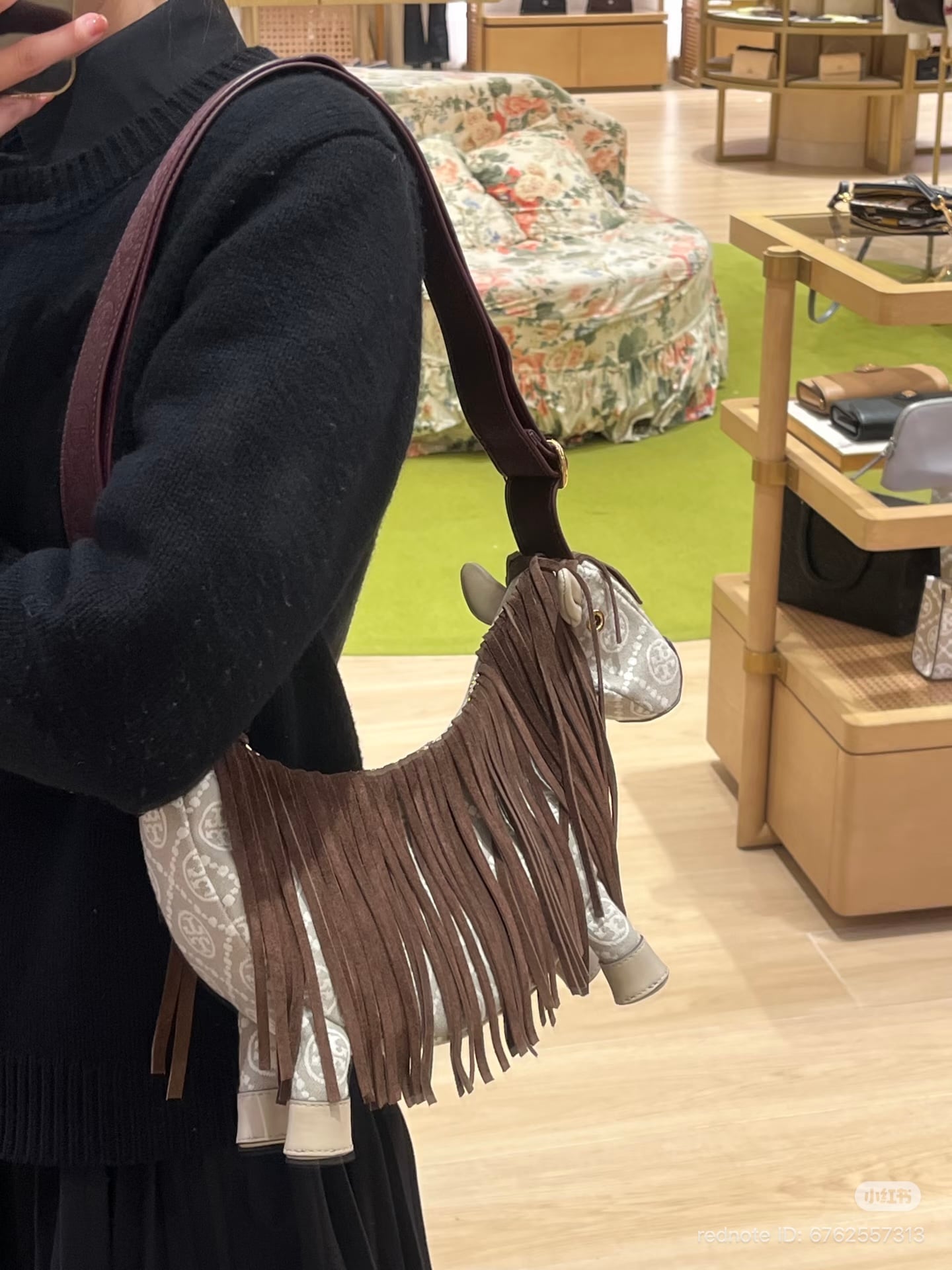 Say hello — or should we say neigh — to Tory Burch’s take on the Year of the Horse. Part of the brand’s limited-edition Lunar New Year capsule, the Horse Mini Bag embraces equestrian vibes with enthusiasm. Crafted in signature T Monogram cotton jacquard with leather and suede trim, the crossbody features a functional saddle pouch and dramatic suede mane and tail. Measuring 11.8 x 7.6 x 2.5 inches with an adjustable strap drop of 22.2 inches, it features a zippered main compartment, an exterior saddle pouch with metal ring, and microfiber lining. The Tory Burch Horse Mini Bag is priced at $630.