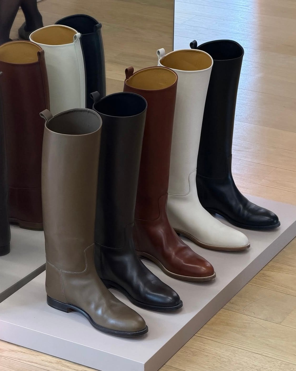 Not your classic Hermès Jumping Boot, the Spring-Summer 2026 iteration embraces a minimalist spirit. Stripped of Kelly buckles and hardware altogether, the sleek design is defined by clean lines and a discreet leather pull-tab at the back for ease. Presented at the Hermès Re-see, the new riding boots appeared in a versatile palette ranging from crisp white to tan, khaki, and black.