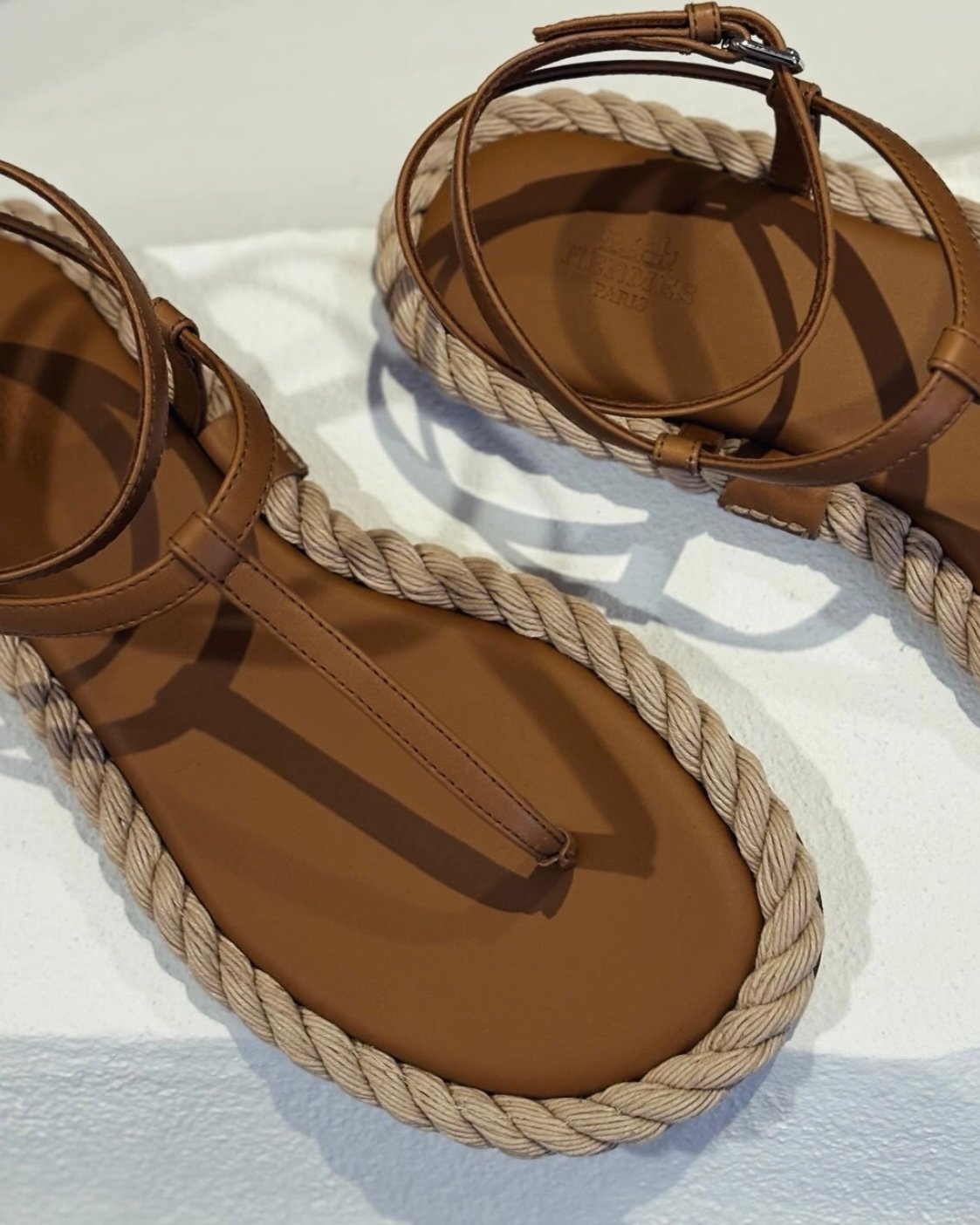 It wouldn’t be a Spring-Summer lineup without sandals, and this season Hermès delivered a pared-back take. Crafted in gold leather with slender thong straps, the design was finished with a rope-inspired trim for pure summertime ease.