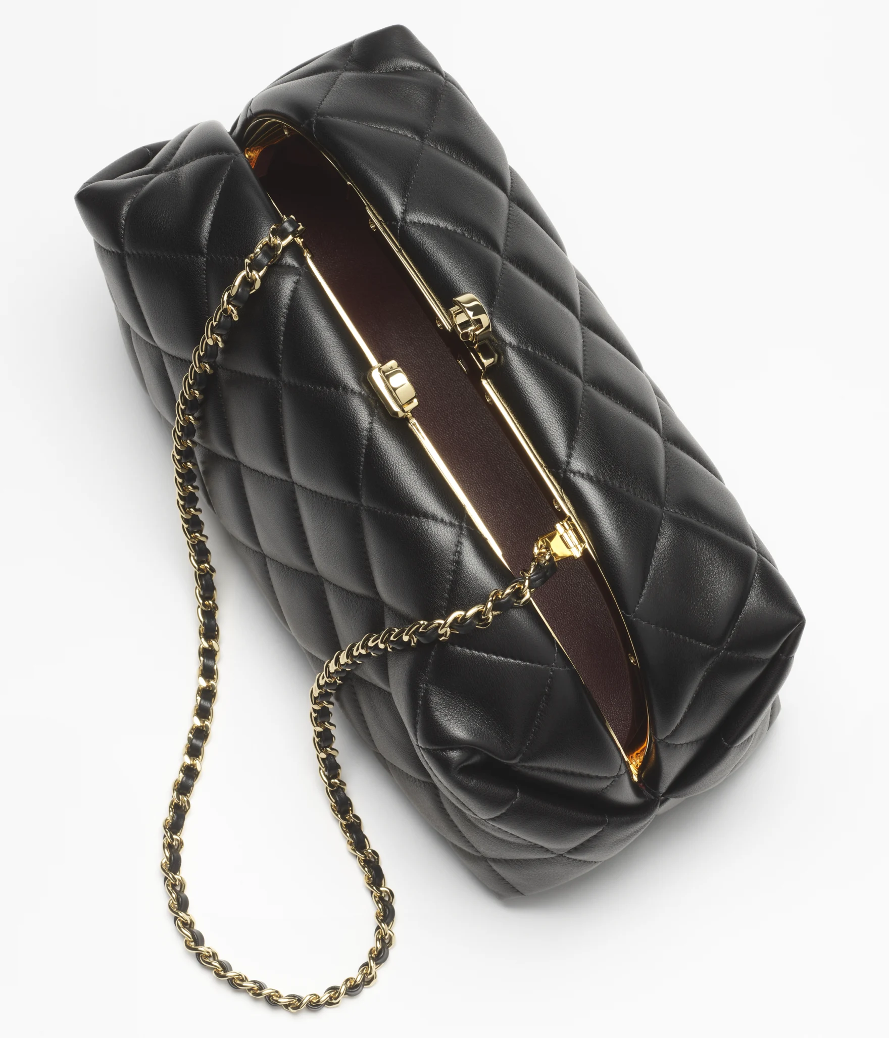 Model and influencer Lori Harvey brought a sleek, structured touch to the runway with the Clutch with Chain in black lambskin.