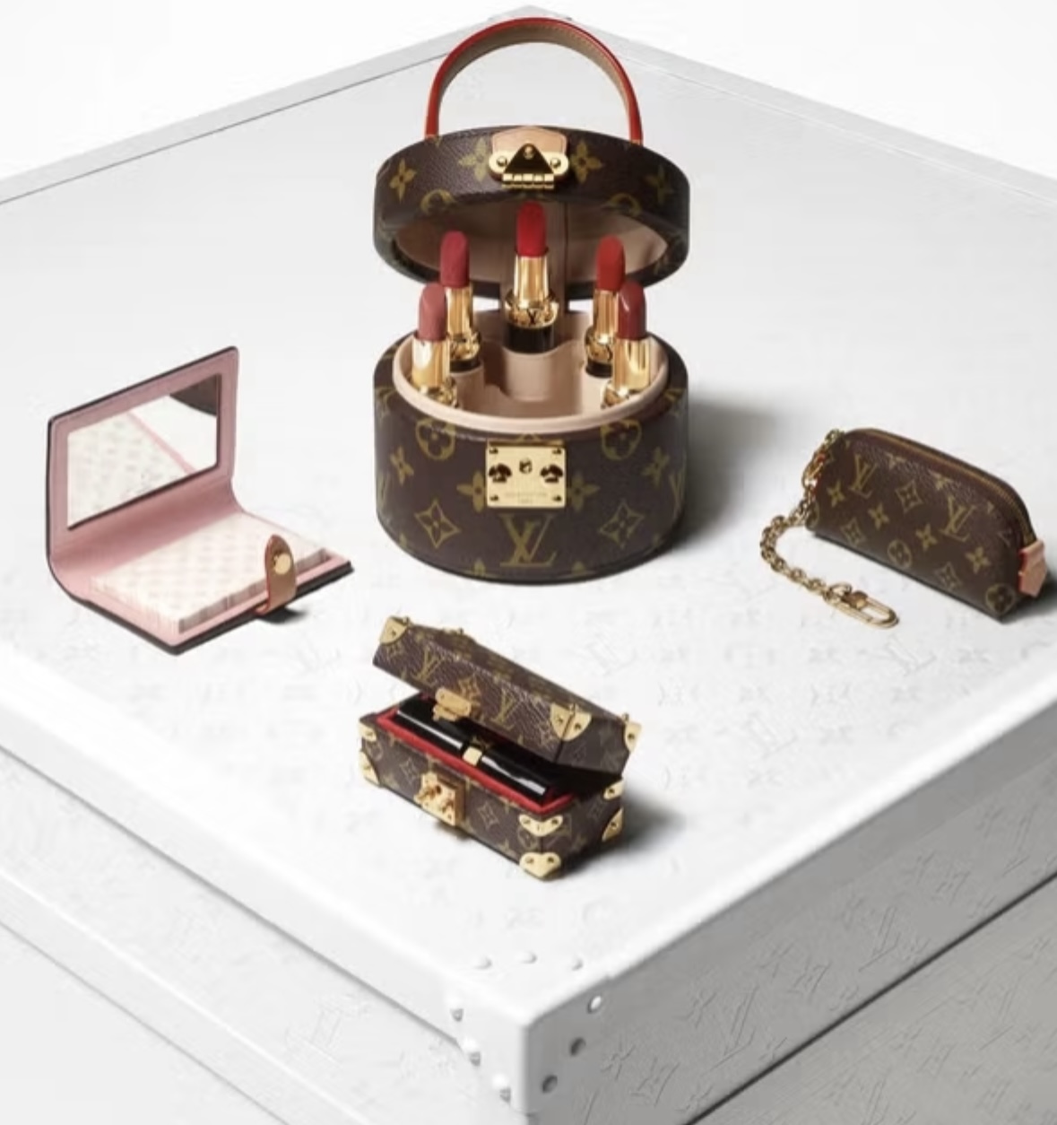 With all props to famed makeup artist Pat McGrath, we don’t doubt she’s come up with something great, packaged in a luxury markers, like the Monogram and Damier patterns. And as a novelty, first run, expect this grouping (likely a limited run) to sell out quickly. Sign up at louisvuitton.com to be among the first (million lol) for the official launch.