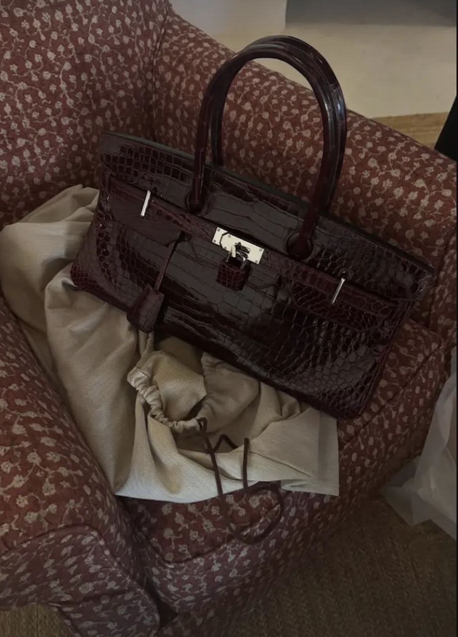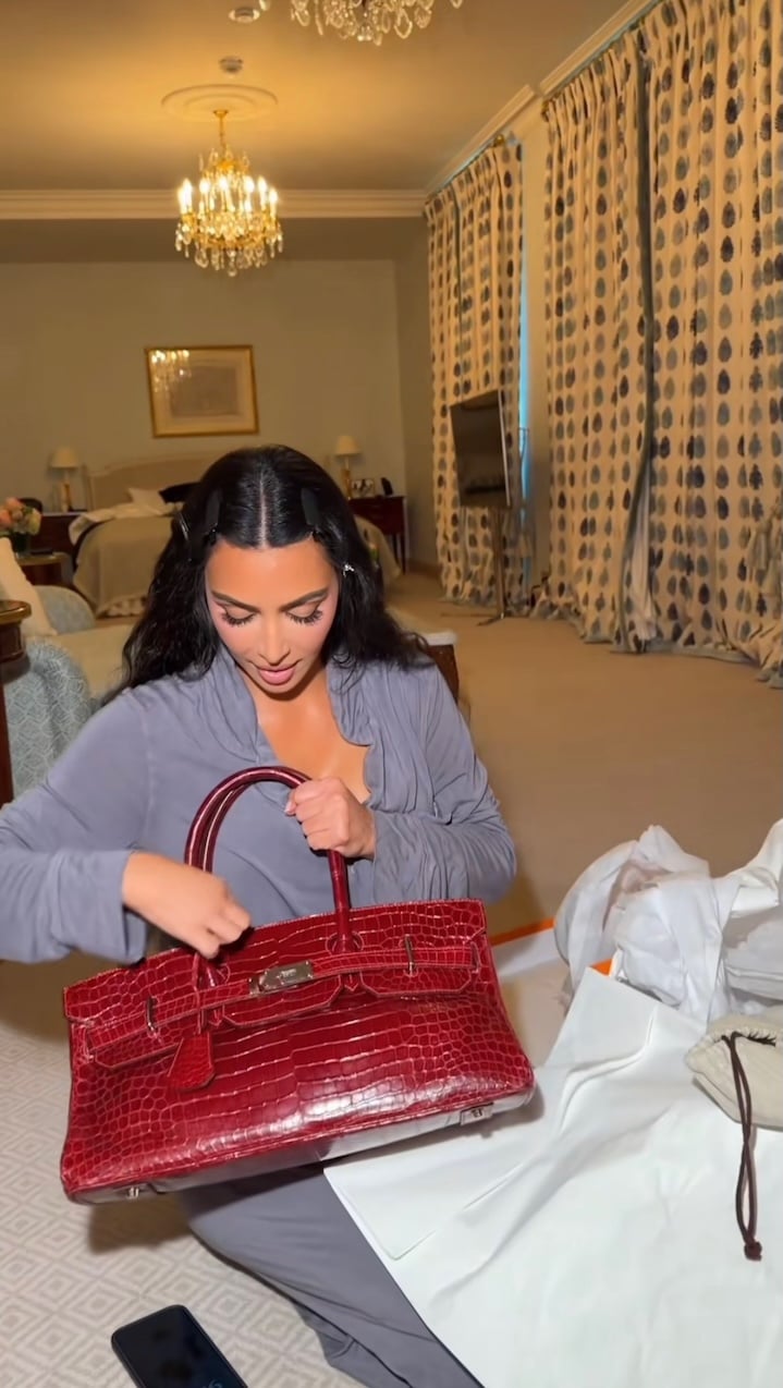 Whether a make-up call or a plan long in the works, Kris took care of Kim’s Hermès dreams for this birthday. According to Kim’s TikTok posts, she received not one but two rare and exotic bags, including a rare large JPG Shoulder Birkin in a red crocodile hue—the other: a dark beige croc Kelly Cut.