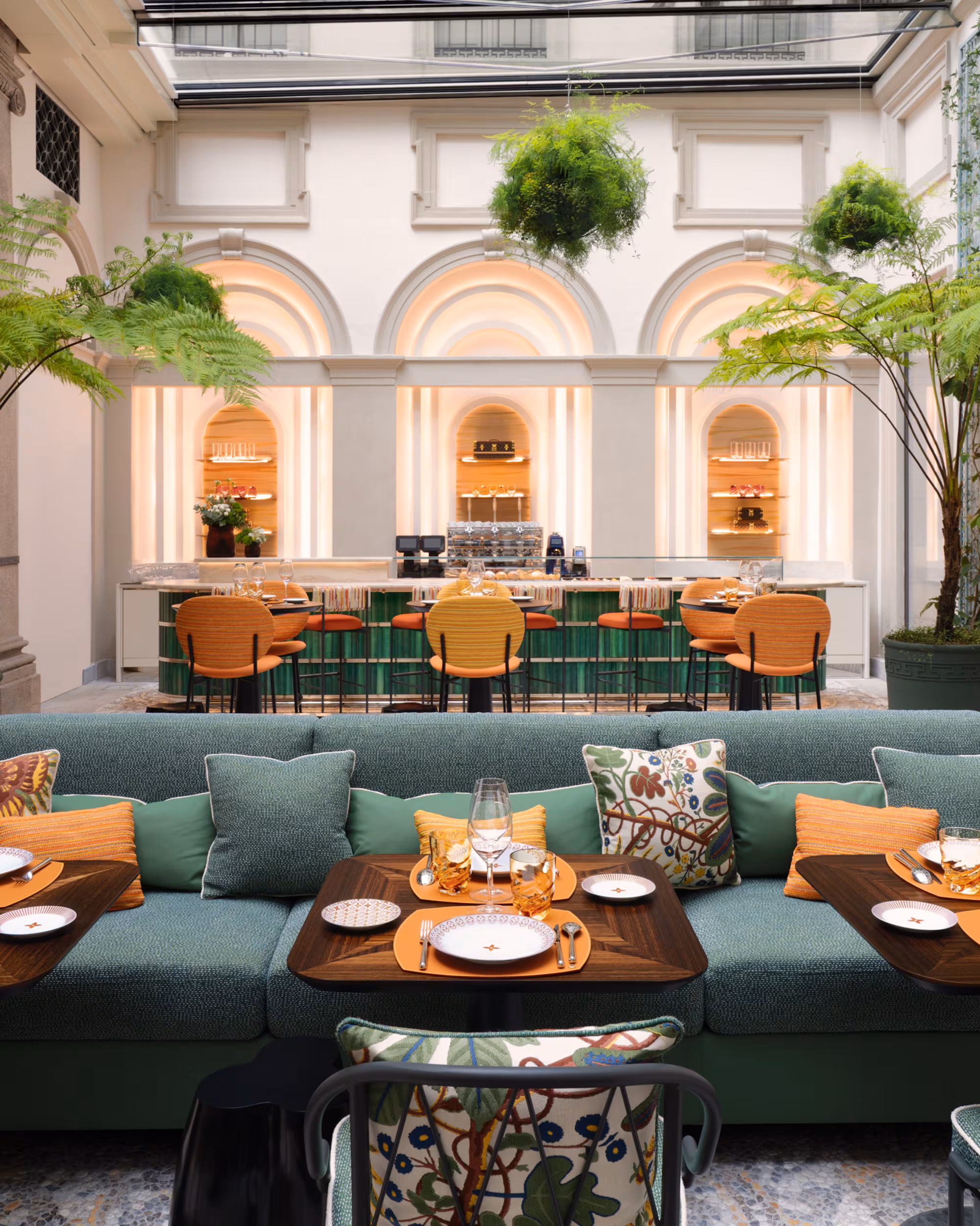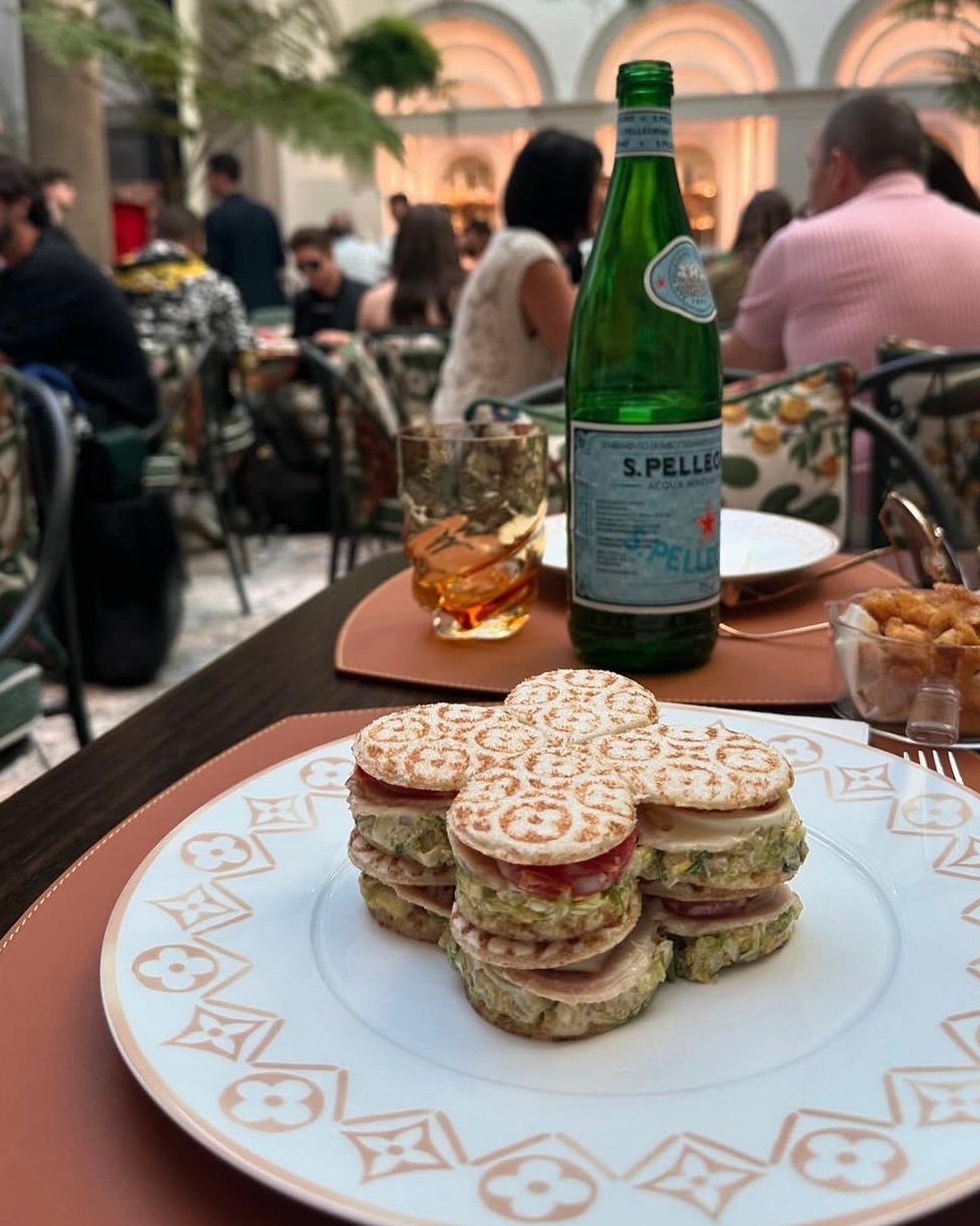 Nestled in the historic courtyard of Palazzo Taverna, accessible through the Louis Vuitton boutique on Via Montenapoleone, Da Vittorio Café offers a luxurious pause in the heart of Milan’s fashion district. The menu features “luxury snacking” and signature desserts, including the renowned tiramisu by Da Vittorio, all served in an elegant setting that blends Milanese heritage with Louis Vuitton’s iconic style.