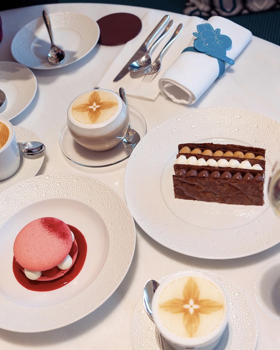 Le Café V in Ginza, Tokyo, the world’s second Louis Vuitton café, sits on the top floor of the Louis Vuitton Ginza Namiki store. Created in collaboration with Chef Yosuke Suga of SUGALABO, it offers an elegant selection of sweet and savory dishes, with reservations recommended to avoid long wait times.