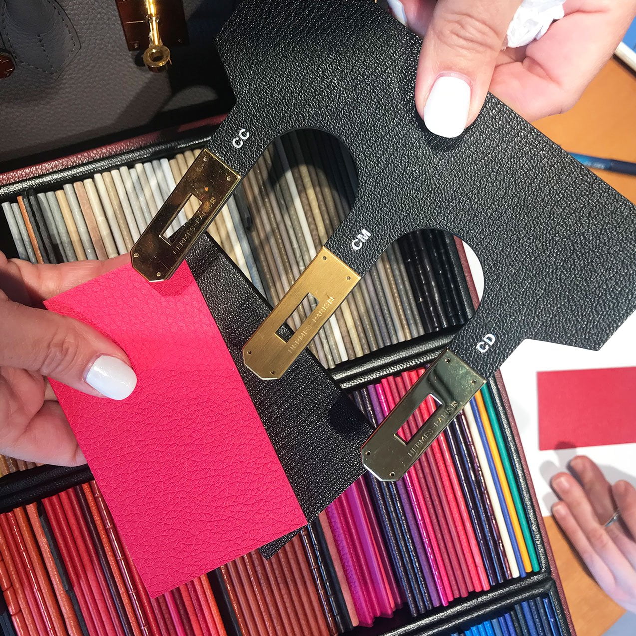 Some choose their tried and true favorite leather: Togo, Epsom, Swift, or Chèvre Mysore. Others take advantage of the SO process and choose the leather most difficult to be offered such as Chèvre Mysore.