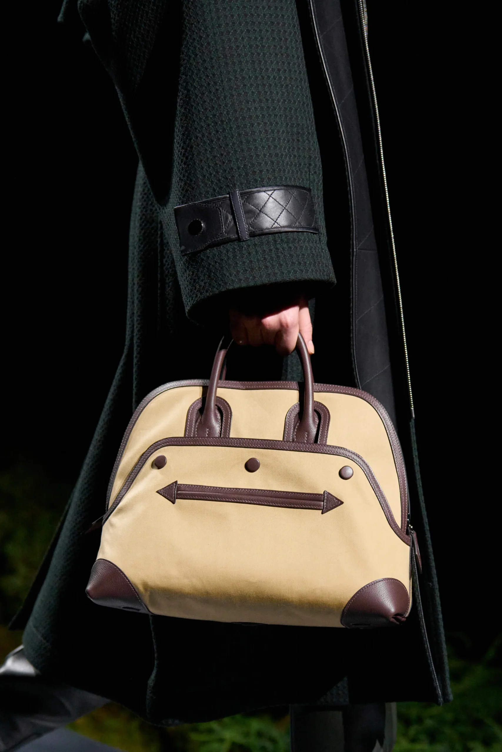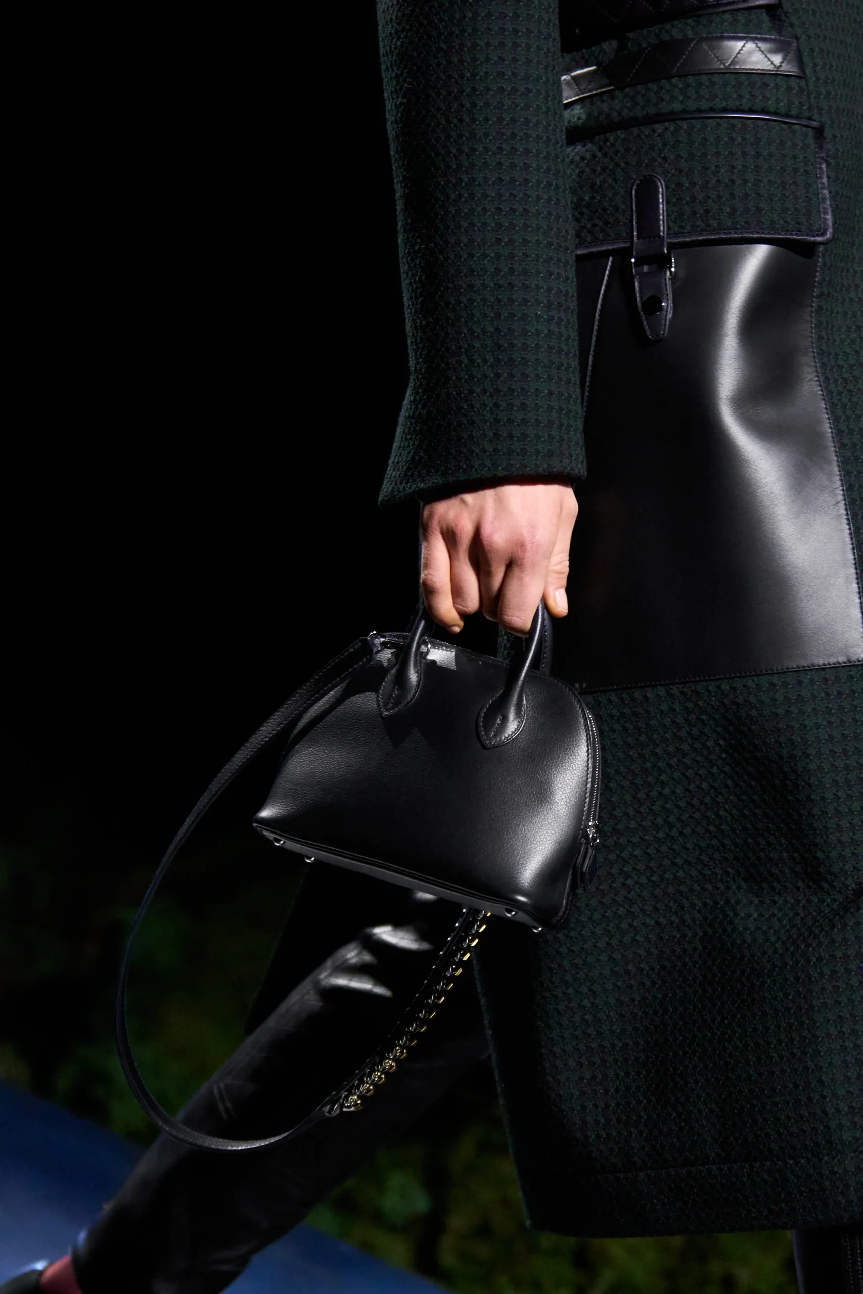 Hermès’ approach to bags this season balanced heritage and reinvention. Icons such as the Picotin, Plume, and Bolide appeared in mini sizes, while the Kelly received utilitarian updates. Contemporary silhouettes like the Arçon were rendered in fresh fabrications, alongside a series of entirely new styles.