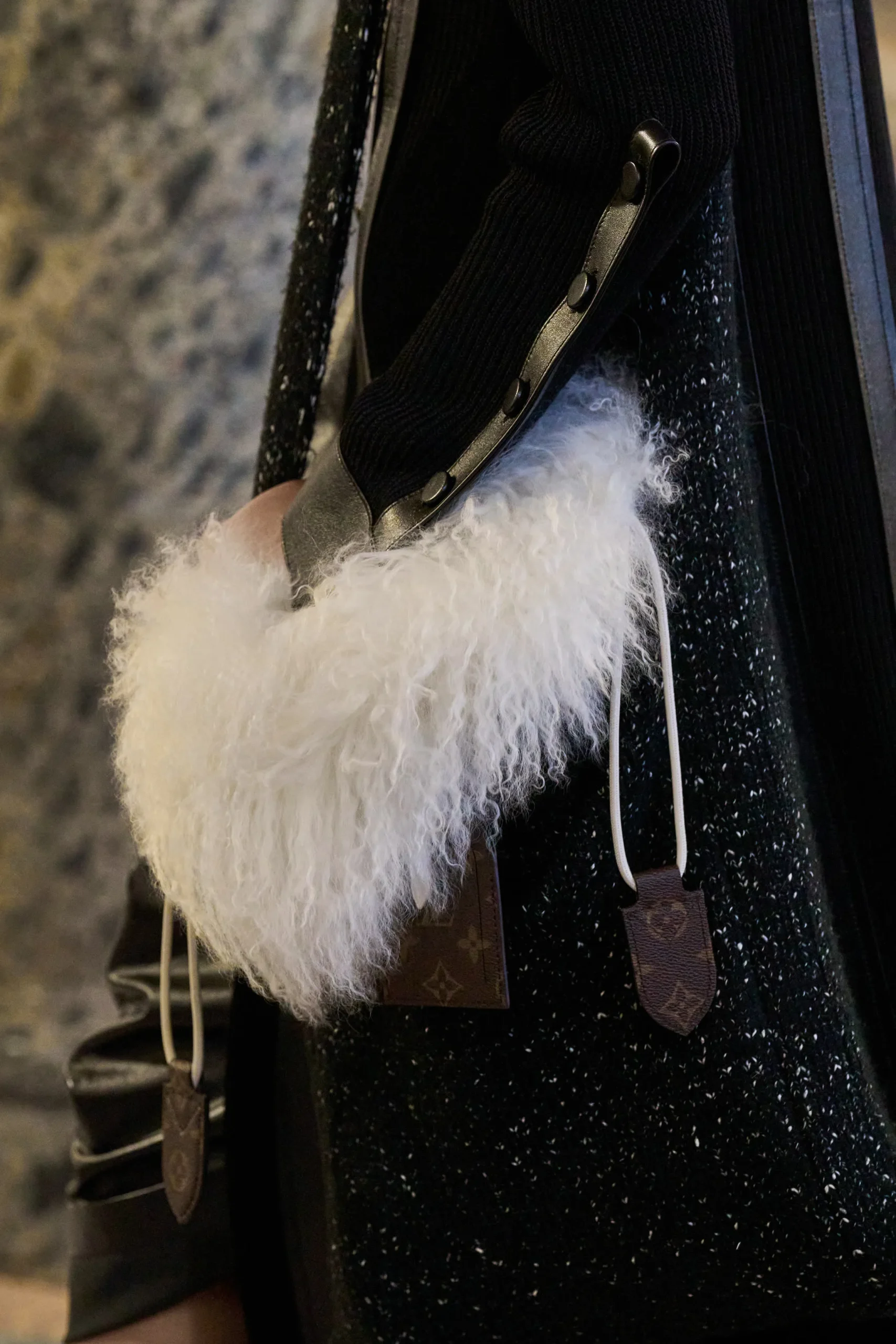 Adding to the knitted lineup, some bags feature a touch of Mongolian lamb fur. Light and cloud-like, this detail adds an extra layer of texture, enhancing the soft, slouchy knitted body.