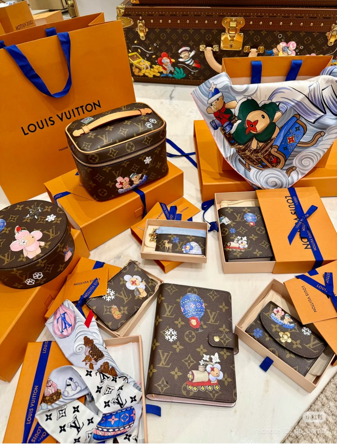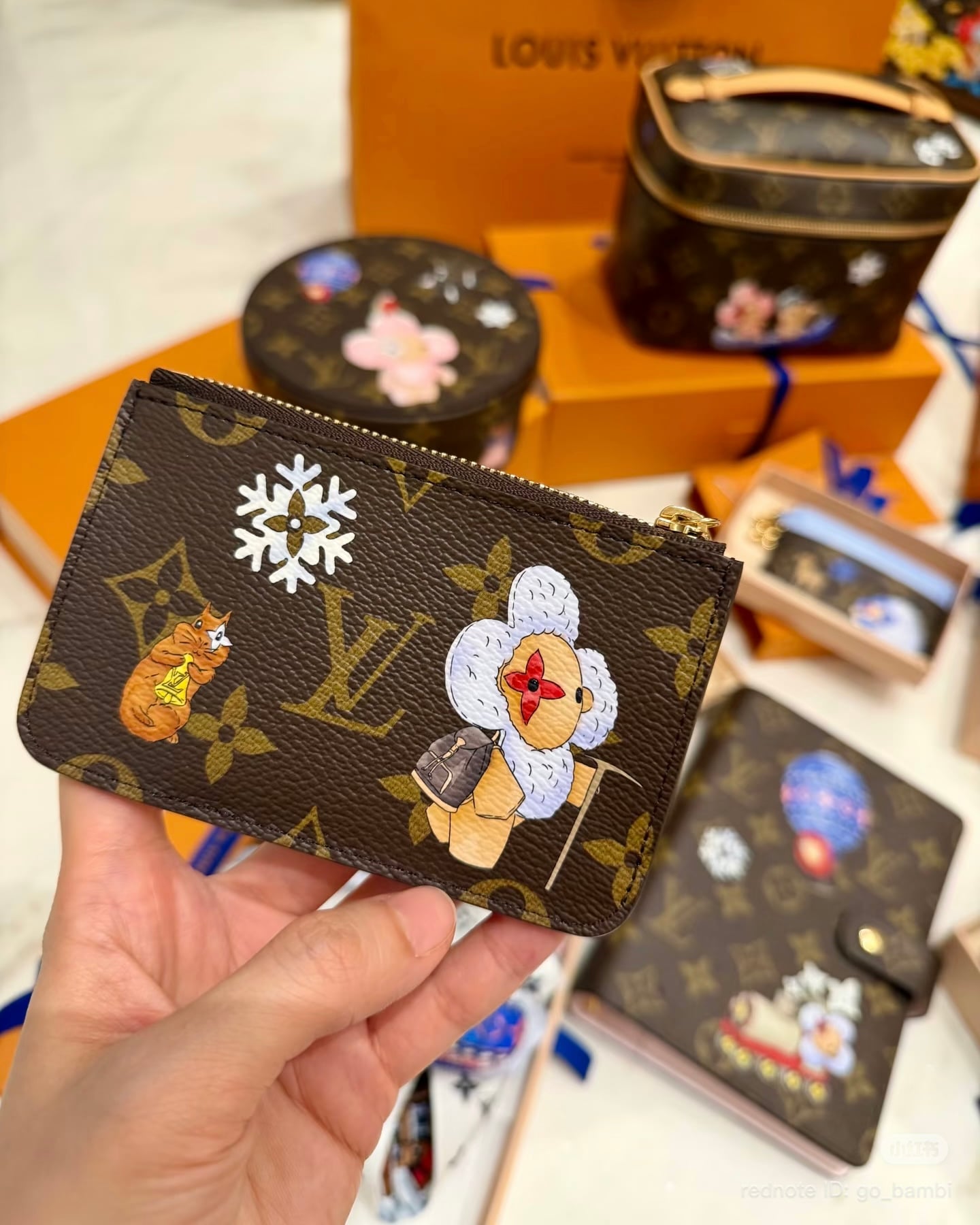 The Vivienne Winter Holiday universe extends well beyond bags and charms. Limited-edition silk square scarves and BB bandeaus bring a festive pop to the season, perfect for wrapping around an Alma handle or adding colour to a winter coat. Small leather goods round out the lineup with effortlessly giftable options—key pouches, passport covers, and card holders that slip neatly into any handbag.