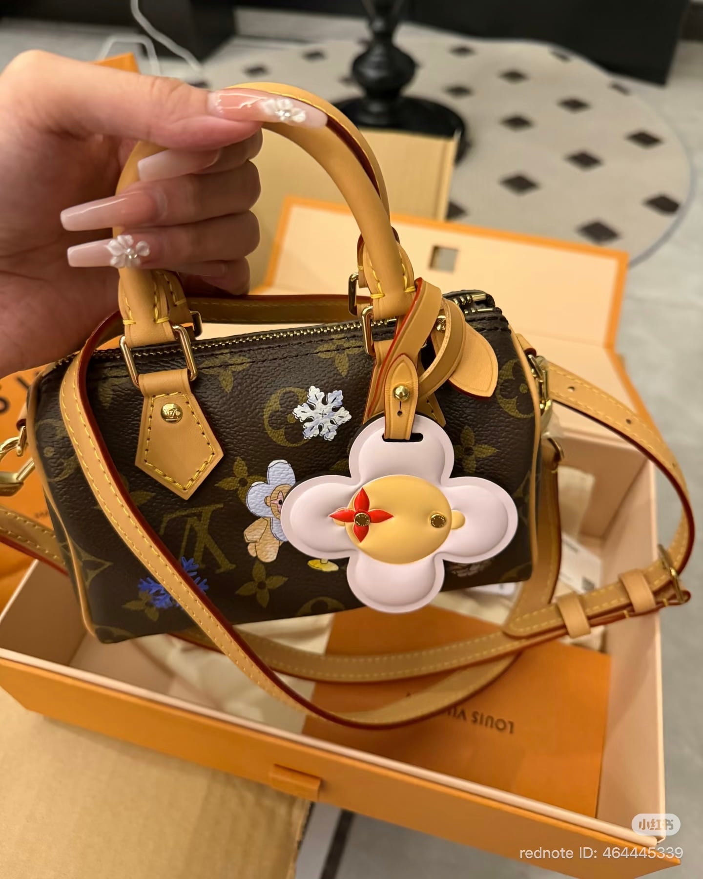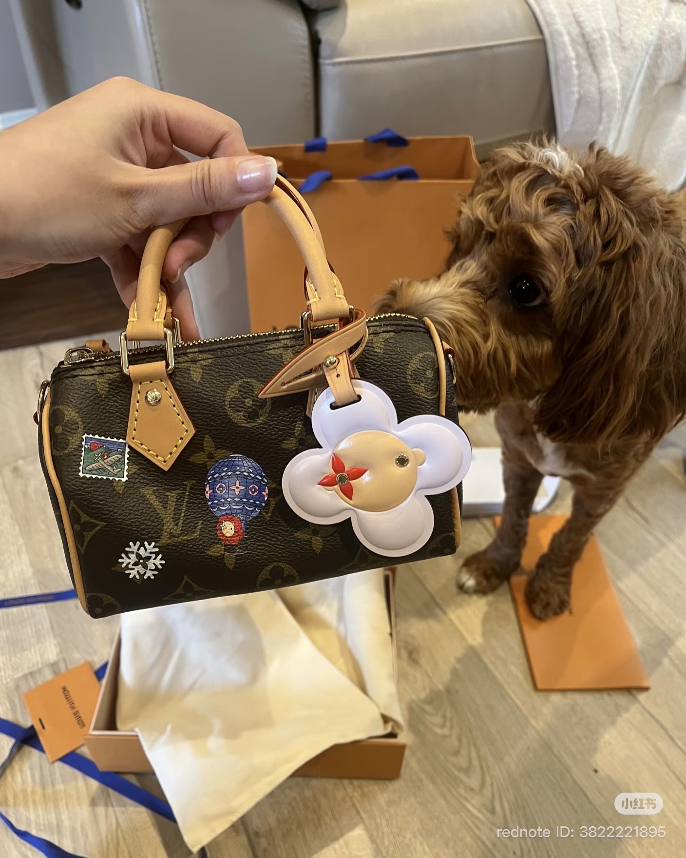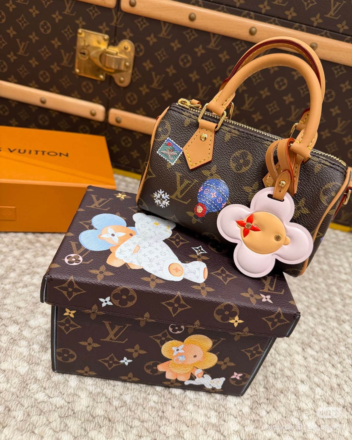 Compact, colorful, and full of personality, Vivienne elevates one of the Maison’s most iconic silhouettes – the Speedy. Crafted from Monogram canvas with a snowy pearl finish, this seasonal design features Vivienne illustrated across the body of the bag, accompanied by a matching oversized removable charm. Offered exclusively in the Nano size, it measures a compact 6.3 x 3.9 x 3 inches and fits essentials like a smartphone, Victorine wallet, keys, earphones, and lipstick. A double handle and removable, adjustable strap (drop 17.9–21.3 inches) allow versatile shoulder or crossbody styling, while a secure zip closure and pale pink lining complete this fun, fresh design for the holidays. The Nano Speedy retails for $2,400.