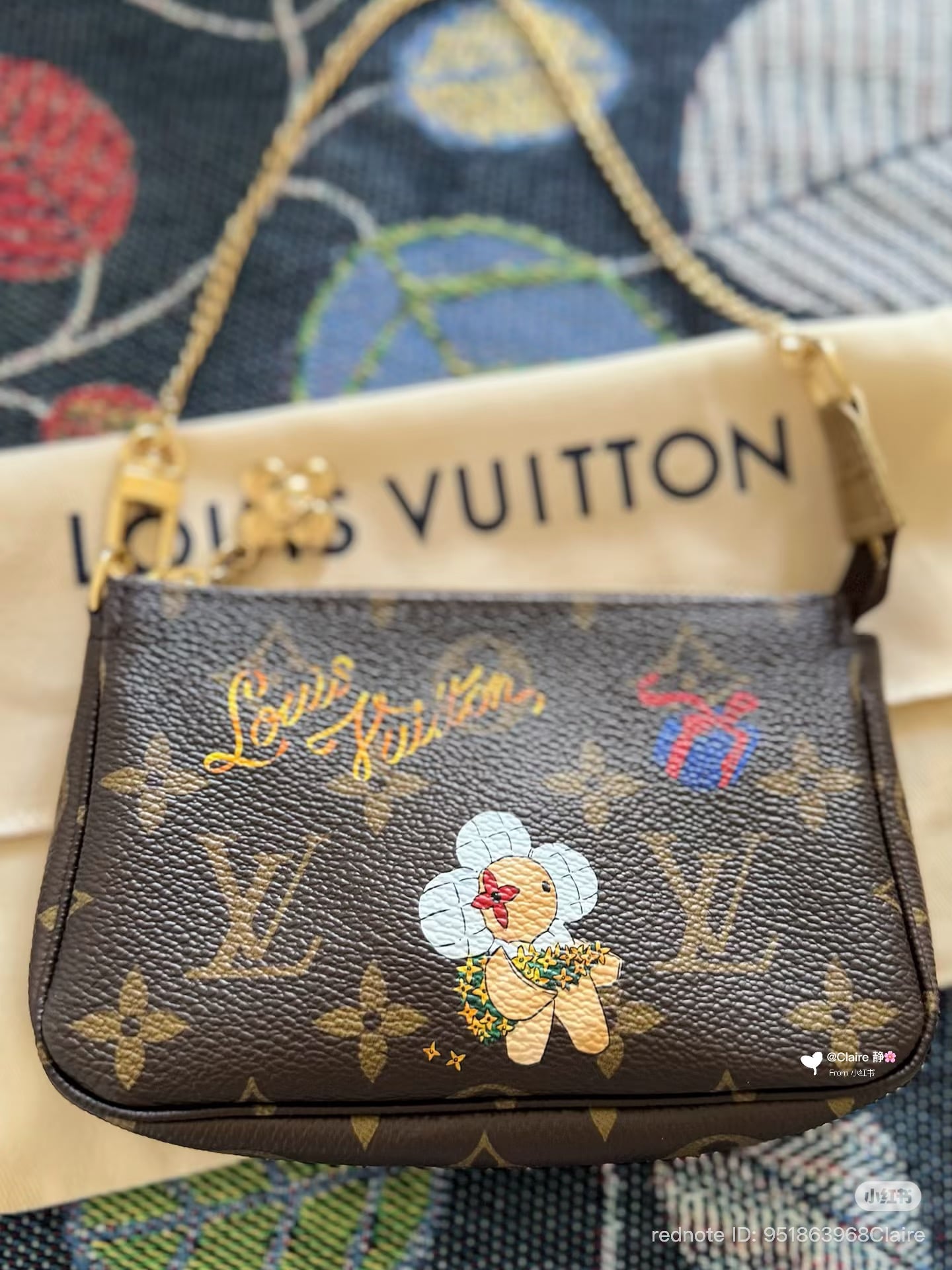 The Mini Pochette Accessoires joins the lineup as another classic, downsized and elevated with a festive twist. Crafted from Monogram canvas with iced gold details, it features Vivienne-inspired detailing, from the metallic zipper pull to the playful motif across the body. Its 6.1 x 4.1 x 1.6-inch frame fits essentials like keys, lipstick, and earphones, while a chain with hook allows it to attach to a favorite handbag or be carried by hand. The Mini Pochette Accessoires retails for $995.