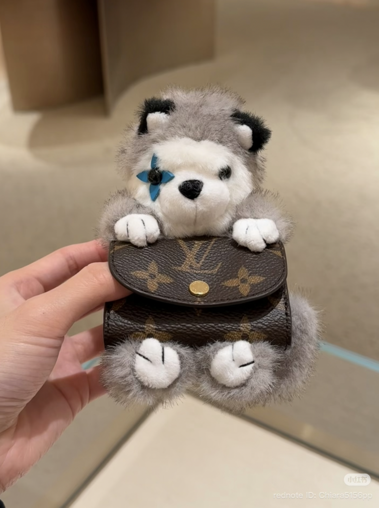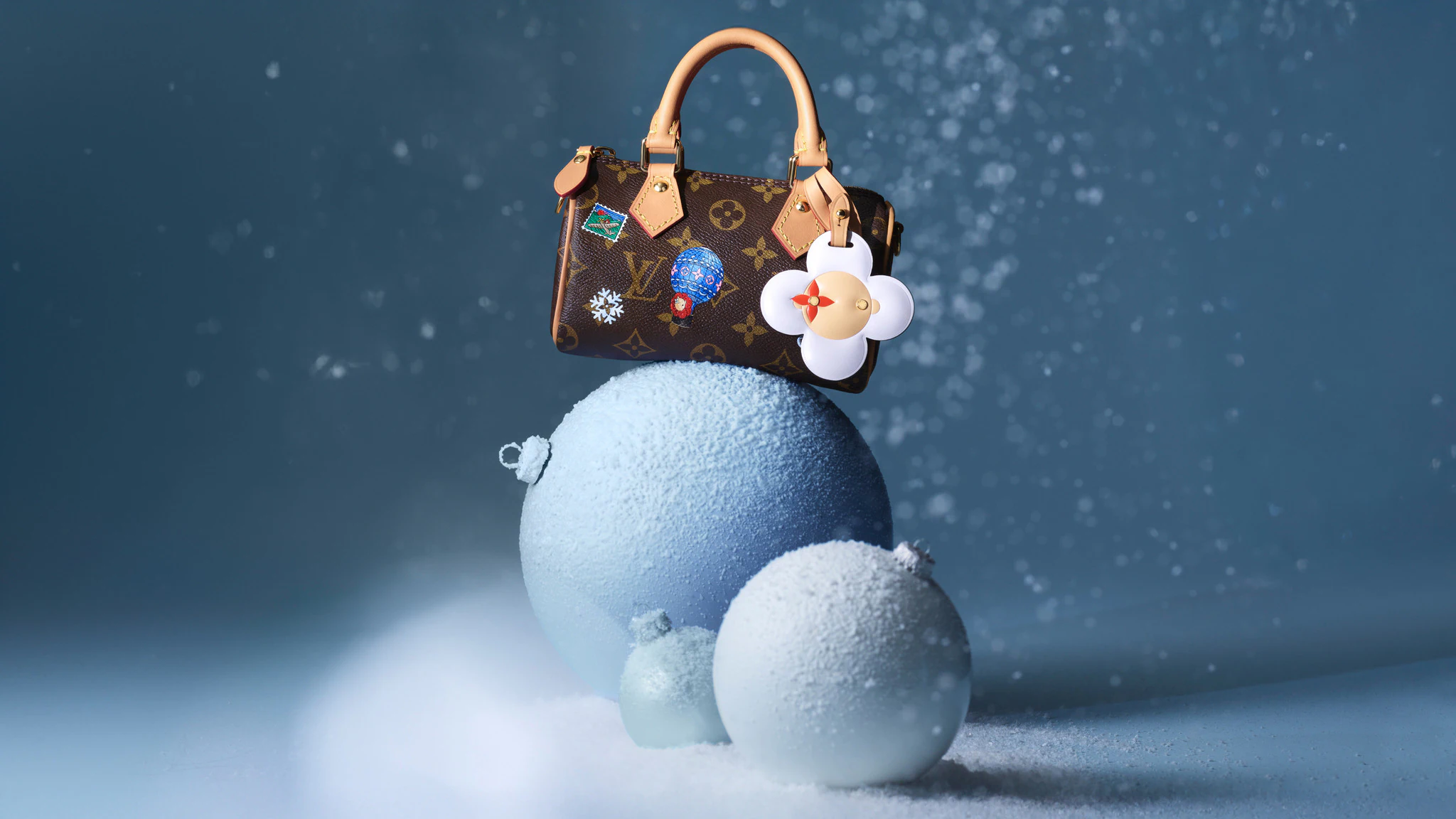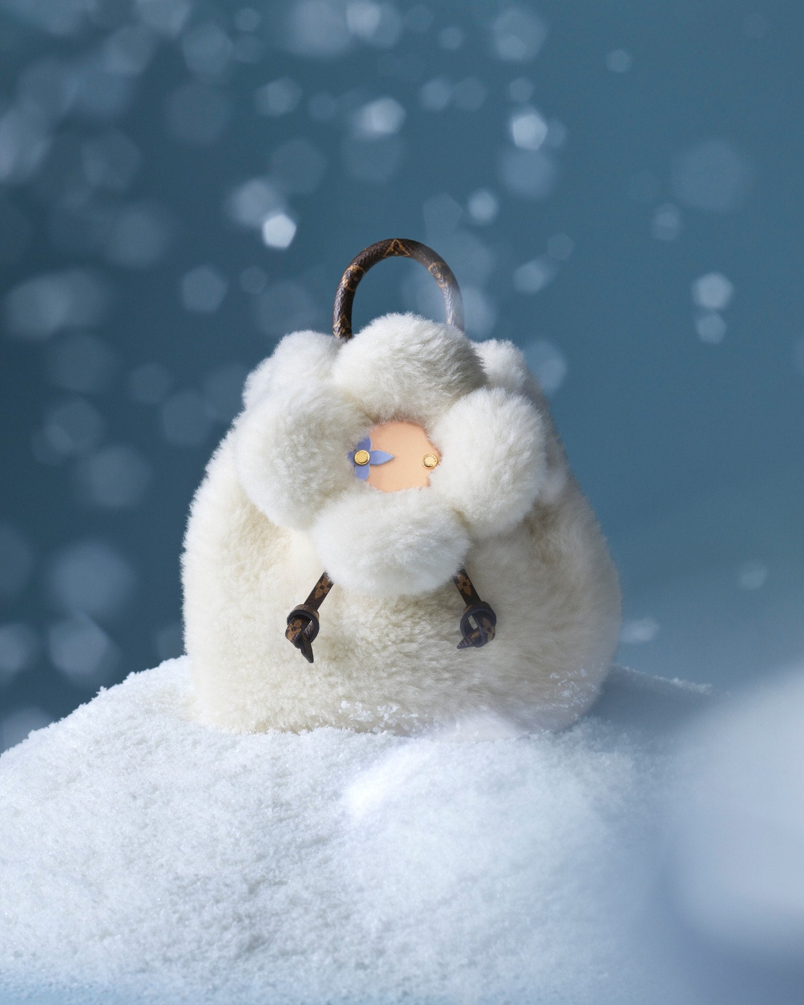 And for something truly statement, the LV Cute Husky charm ($790) pairs plush sled-dog appeal with a functional Monogram leather micro-pouch, perfectly sized for ear buds. Whether whimsical, furry, or practical, these small-scale accents add effortless holiday cheer to any bag.