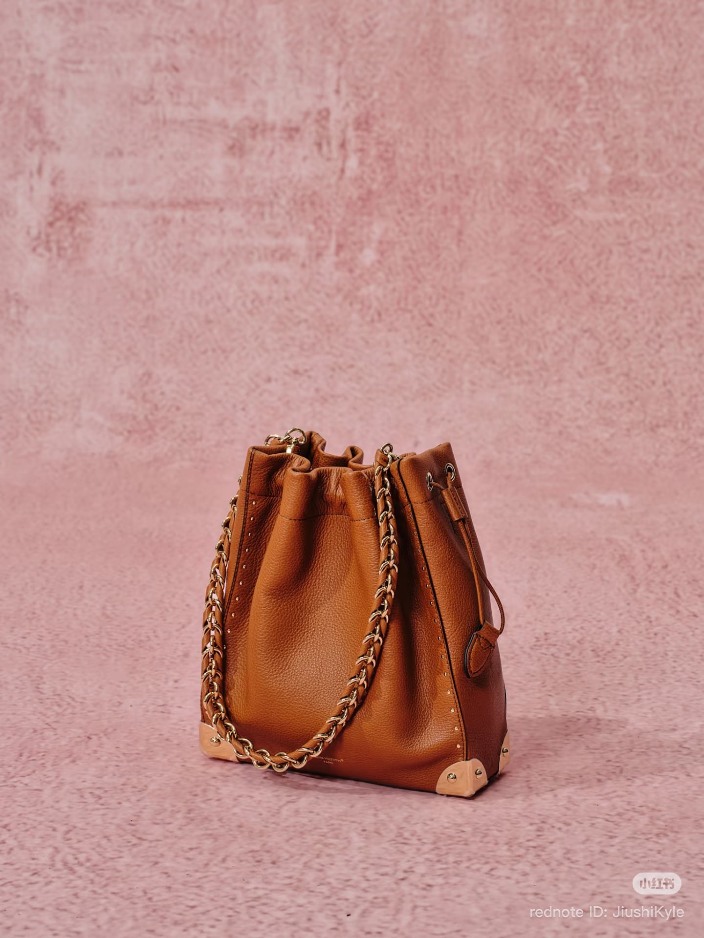 Introducing the Noé Trunk, a refined bucket silhouette reimagined through the lens of the Out Of The Trunk collection. Crafted from smooth calfskin leather, the design merges the relaxed ease of the classic Noé with structured, trunk-inspired detailing — reinforced metallic corners and rivet detailing across its seams. A removable braided chain brings an additional dose of gold-tone hardware, while the Noé’s classic drawstring closure keeps essentials neatly secured.