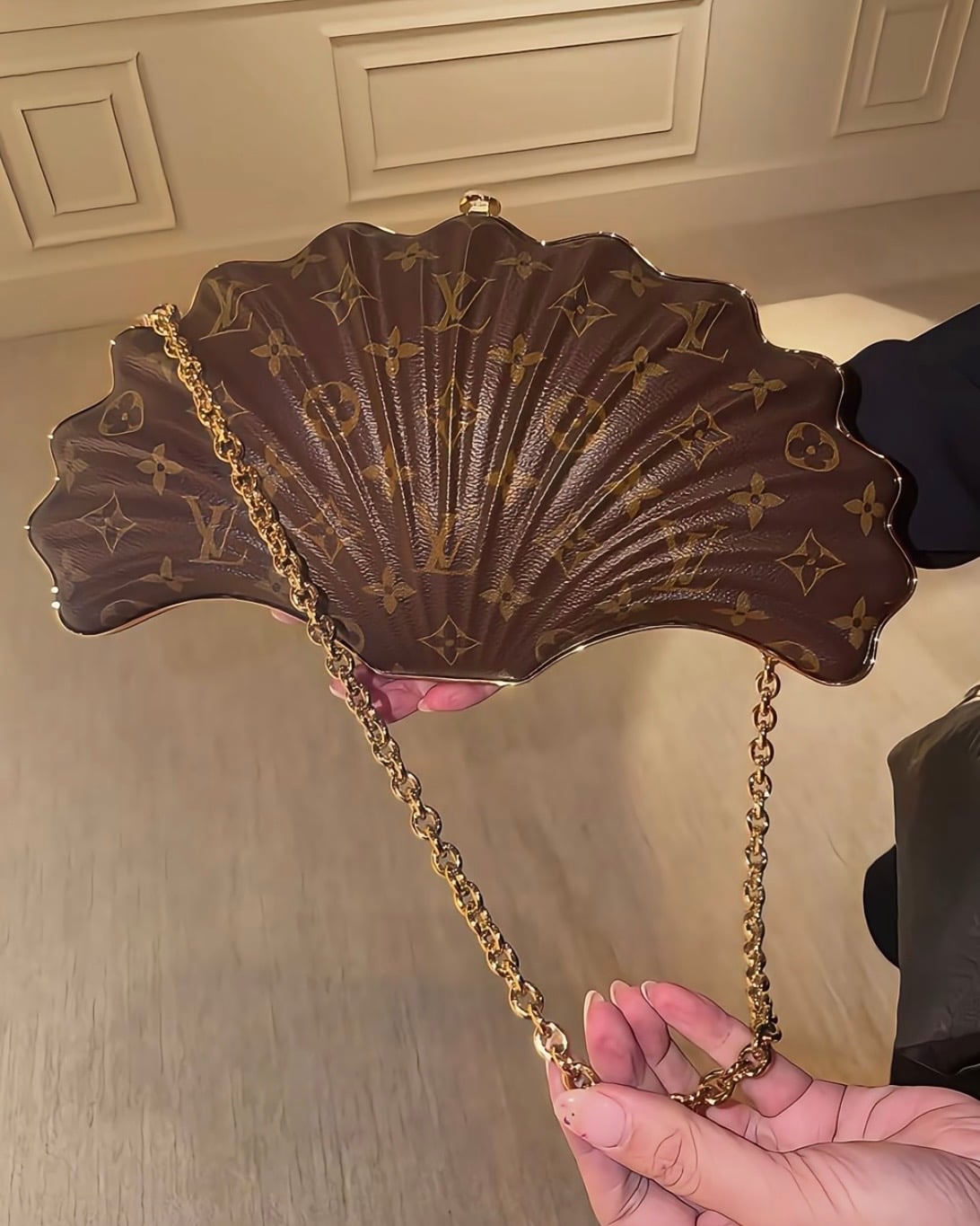Measuring 13 x 7.1 x 3.9 inches, the Whisper fits a 6.7-inch smartphone, cardholder, keys, and lipstick, offering just the right amount of space for sun-soaked days or evening outings. A removable chain with a 9.8-inch drop allows you to wear it on the shoulder or simply clutch it close. The Louis Vuitton Whisper bag is priced at an eye-watering $10,700.