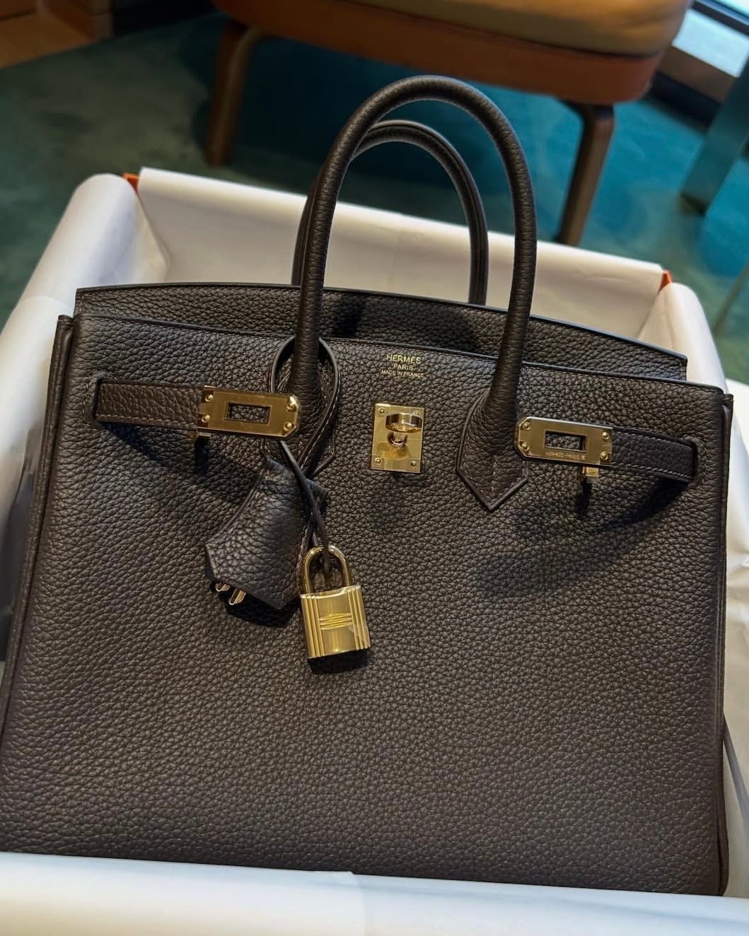 Meet Bai Brun, the newest neutral trotting onto the Hermès color roster. Inspired by the glossy coat of a bay horse, this deep chocolate brown carries warm, subtle red undertones that add richness and depth. Hermès is leaning into its warmth, most often pairing Bai Brun with Gold or Permabrass hardware to really highlight those tones. Bai Brun is certainly set to join the ranks of favorites like Ébene and Chocolat.