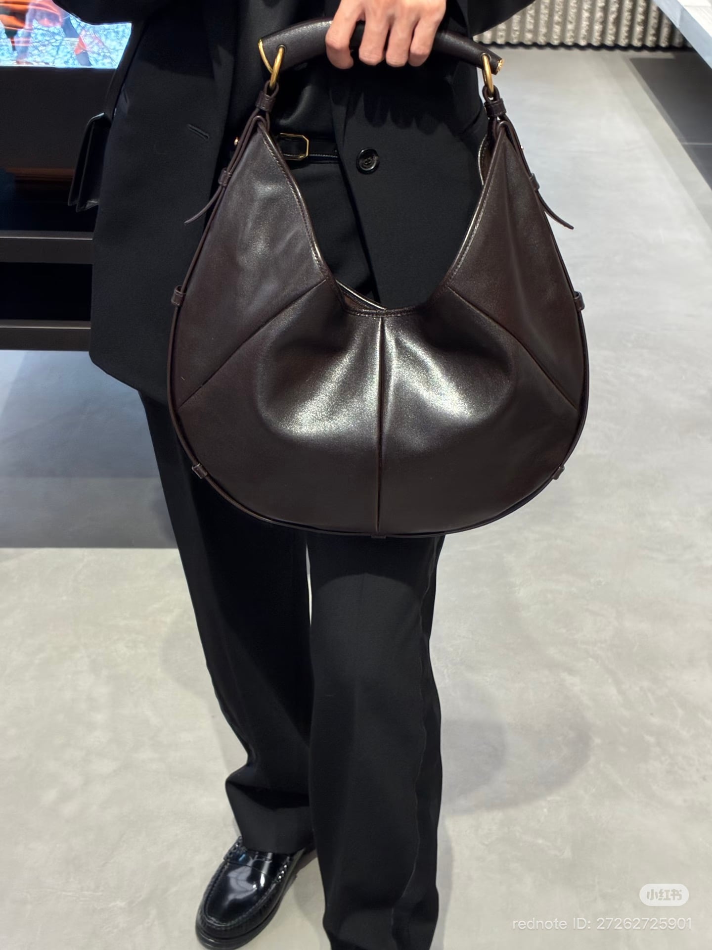 The Mombasa is offered in three sizes: small, medium, and large. The small measures 6 × 10.5 × 1.5 inches and features a single main compartment, ideal for carrying essentials. The medium, at 9.5 × 15 × 17.5 inches, includes a zip pocket for a compact, organized interior. The large, measuring 12 × 18.5 × 22 in, provides a roomier interior with a zippered pocket. All three sizes retain the Mombasa’s signature slouchy crescent silhouette and sculptural presence.
